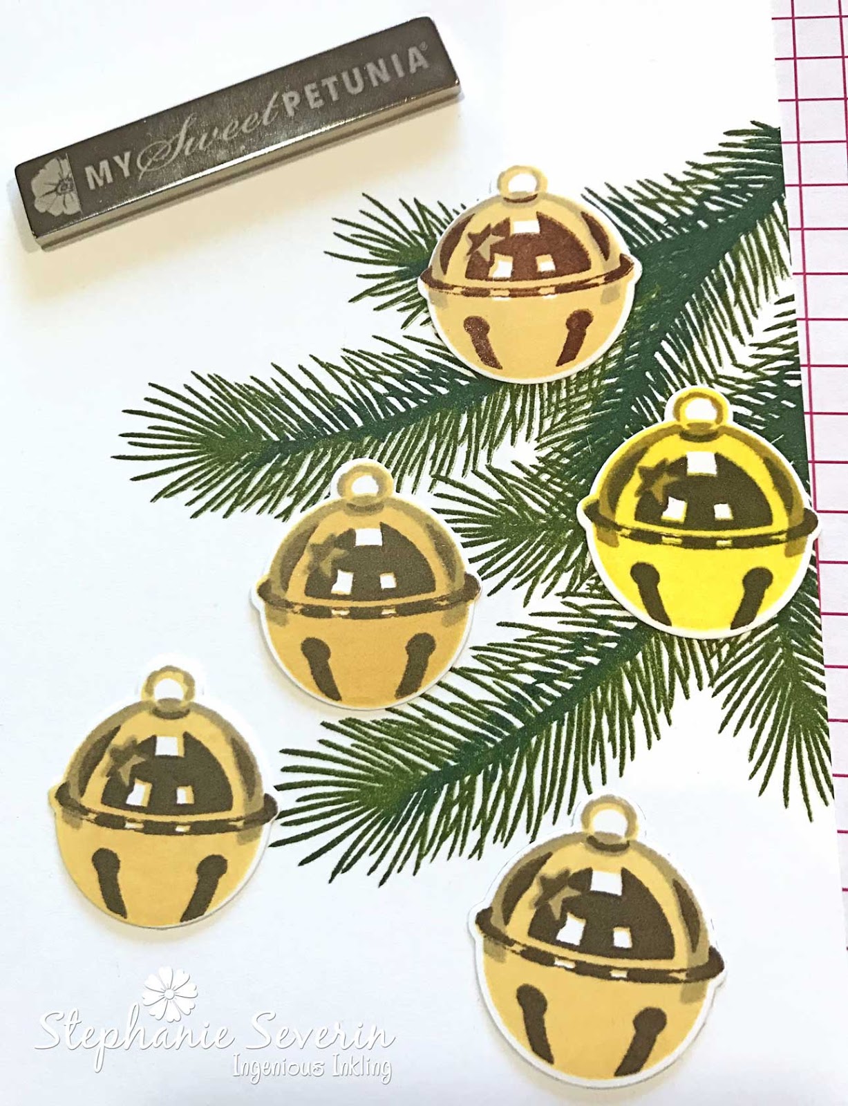 I stamped the three images that layer to make the bell in the three colors so you could see what they look like before you layer.